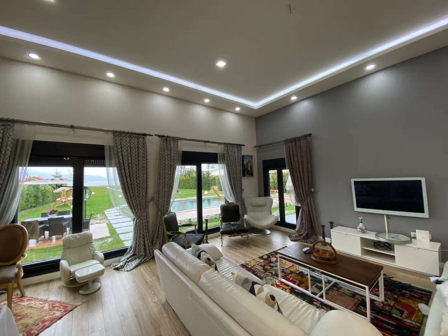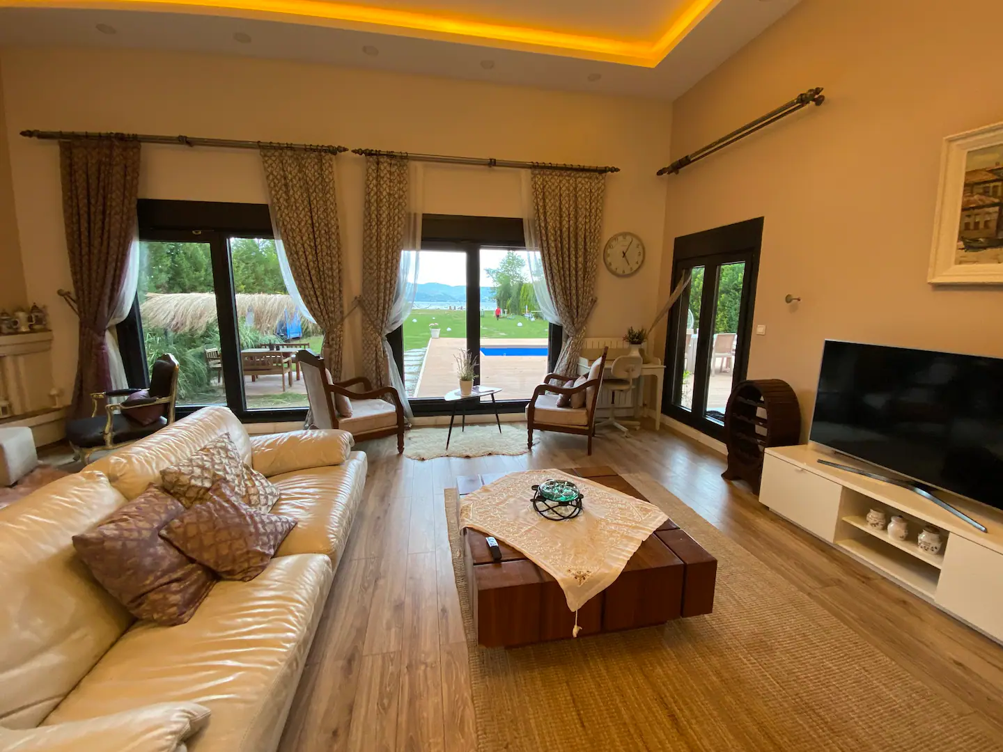 Göl kenarında, eşsiz bir tatil deneyimi sunan bu 3500 metrekarelik özel villa, konfor ve lüksü bir araya getiriyor. Sapanca gölüne sıfır konumda bulunan villamız, tamamen size ait özel bahçesi ile yüzme ve balık tutma imkanı sağlıyor. Aracınız için sıcak havuz, güvenli bir garaj, bahçede salıncak, spor aletleri, hamak ve trambolin de bu huzur dolu villanın sunduğu aktivitelerden sadece birkaçı.